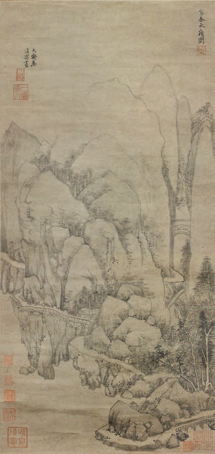 近得唐寅山水绢本一幅,笔墨甚佳。时人不重绢本,故价甚廉。综余所见唐寅画,以绢本者为佳。纸本除虚斋藏《春山伴侣》