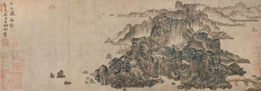 一种,各有私淑,为前人所未知也。《快雪时晴》卷首一页,传为大痴笔,虽无款识而行笔松秀浑穆,恐非大痴不办。幼文画不多见,余所见者为仿董、巨一种,此独仿河阳,设无著录、题跋为依据,则无从知其为真迹也。