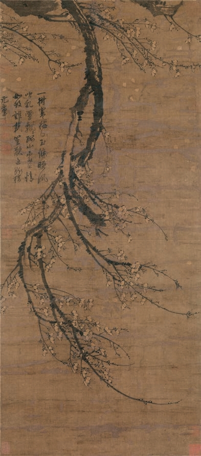十月廿九日。于洪玉林处得王元章《墨梅》 (图1—22) 绢本立轴,书堂有顾大典题,下书堂有张逢时为颙翁题诗。笔墨甚佳,惜绢已破损,为可惜耳。此画流通已久,时人颇多以为赝本,独湖师与余赏之,可谓元章知已。价八千(金十一),廉极。此画款字、笔墨可与《支那名画宝鉴》第三八六页印出故宫藏本印证之。