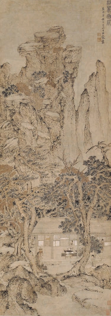 十二月十一日。梅景书屋见麓台仿大痴设色(后添色)轴,绝佳。孙伯渊处见王湘碧仿山樵《云壑松阴》,为七十岁左右作,松秀俊雅,为此公杰作。(细。)