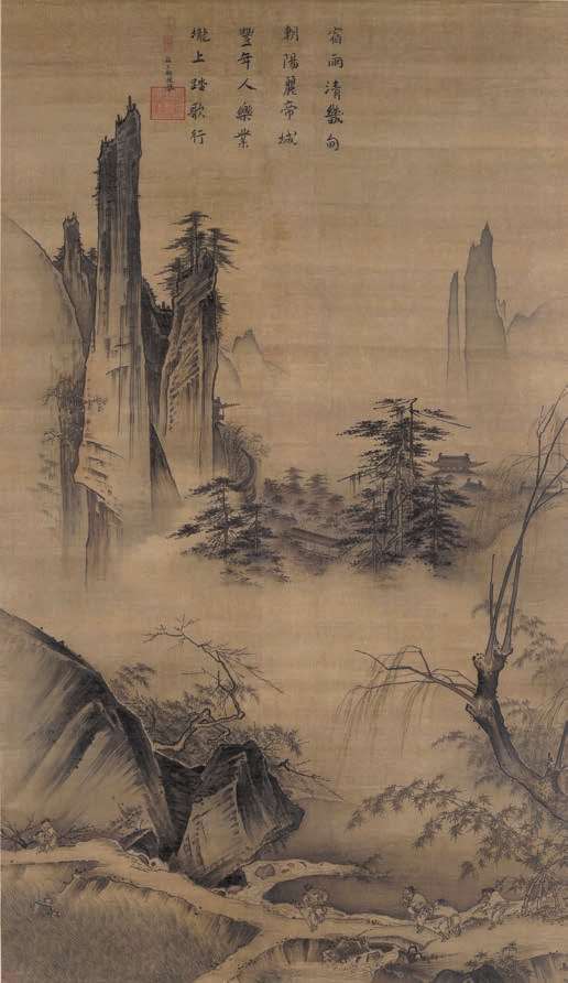 余尝以吾国之画划为二种,一为纯粹画,一为写实画, 前已屡屡言之。前者属主观,如大痴、云林是;后者属客观, 宋院本及唐寅、仇英是。前者通于书法,以复杂幽美之线条 写作者之意想,故于物象之是否相合,透视之是否正确,均 可不问,所发挥个人笔触之技能,章法组织之谐和为主要问 题。譬之纯粹音乐,亦极有相像处。笔触者,音键也;章法者, 音调也。以其铿锵悦耳为惟一目的,至于音乐中亦有表情感, 如听之使人悲,使人愁,或使人兴别离之感,等等,此种音 乐亦属引题音乐之一种,适与写实画极相似也。故以科学方 法分析之,则吾国写实画对于透视、光暗亦大有缺点。后起 学者不妨从此处着眼改进,将来必有新意可出。至于纯粹画 则半由工具关系,半由书法关系而发生。欧西或尚无此种画 学也。余意不论纯粹画及写实画,总以多游历,多增见识为 惟一要图,否后之学者思想愈趋愈狭,永无出头之日。纯粹 画虽无须写实,然必多观真山水,以开发胸怀,辅助思想, 始可旁搜博采,成一家体制也。