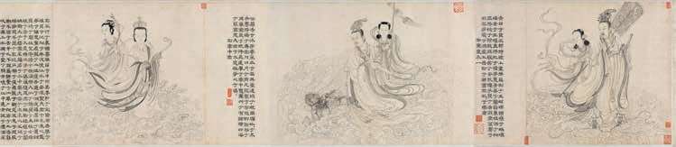 ,长二丈余,白描甚精细,乃临仇氏本也,有文徵明小楷《飞燕外传》及王世贞等诸名人跋。