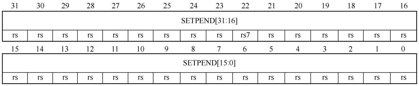 [31:0]:SETPEND,中断设置挂起位。当写入时: