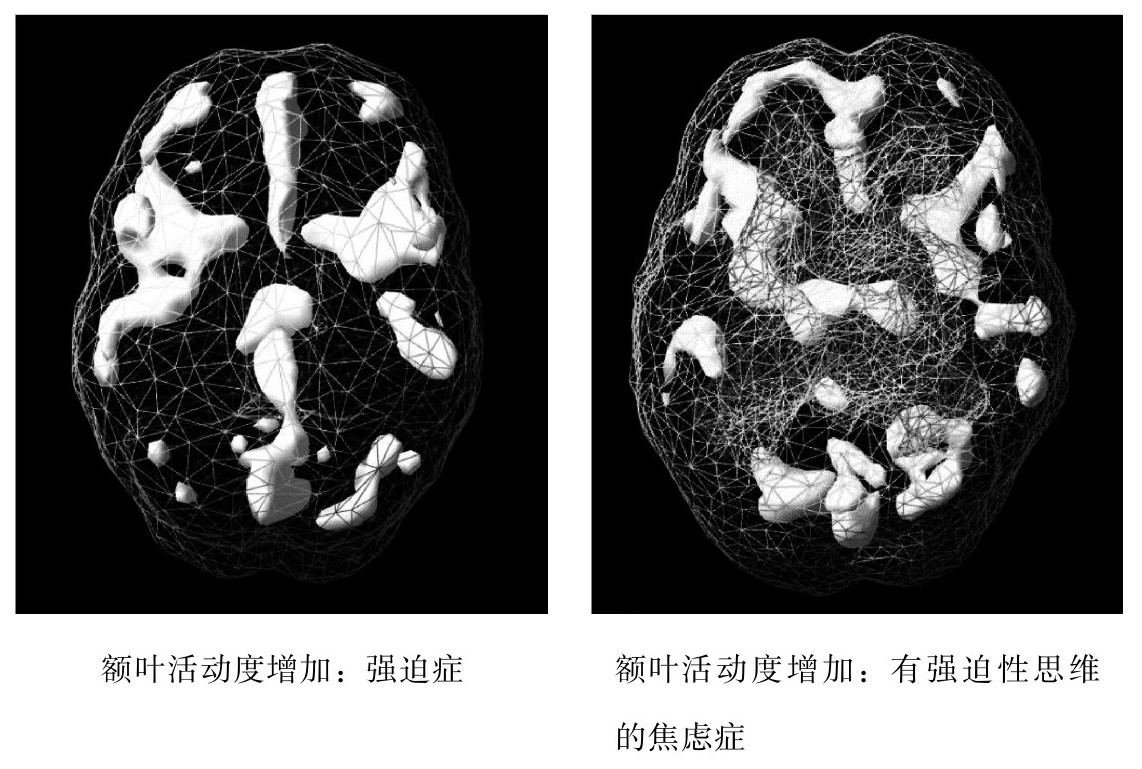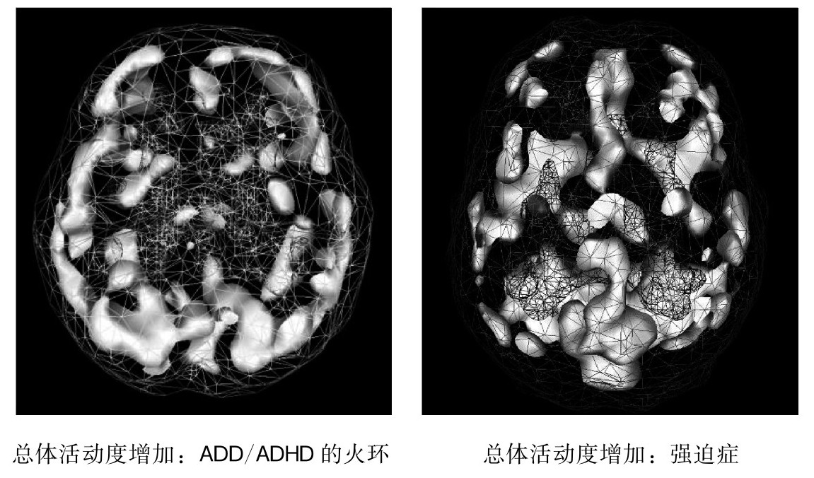 使用过脑功能成像的医生都知道,扫描结果永远不会与《精神疾病诊断与统计手册》中的症状群相匹配,因为《精神疾病诊断与统计手册》并没有基于任何潜在的神经科学证据。在评估脑功能的工具如SPECT和QEEG出现之前,《精神疾病诊断与统计手册》就已出版。有经验的临床医生知道,虽然没有这些工具的帮助,也可能知道患者是否患有ADD/ADHD、强迫症或双相情感障碍,但是如果没有功能性脑部成像,临床医生就无从知道患者的病理或病因。如果不做大脑成像,医生将无法分辨注意力不集中、抑郁或攻击性是否来自: