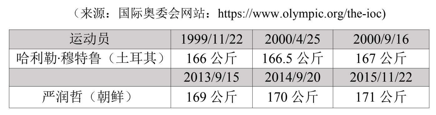表6 奥运挺举项目中较旧的世界纪录提升数据