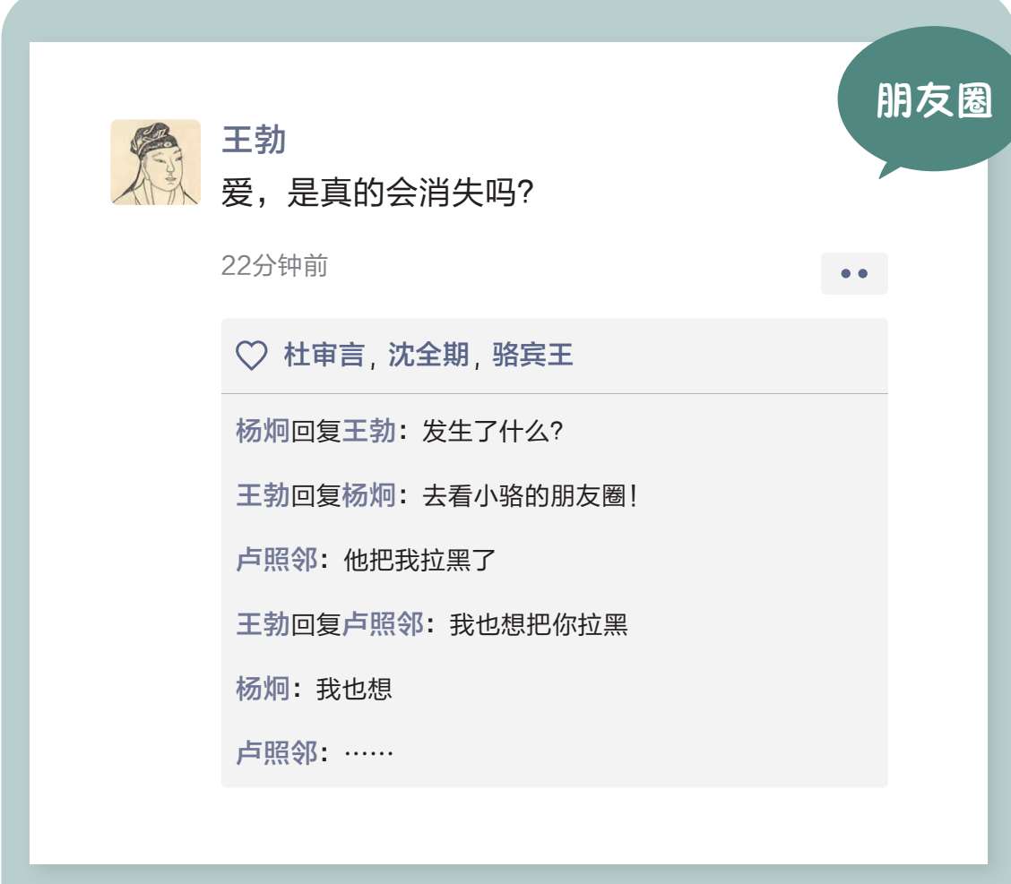 就在这一天,初唐四杰的朋友圈在诗坛引起了不小的动静,大家纷纷都在传,他们友谊的小船怎么说翻就翻了!