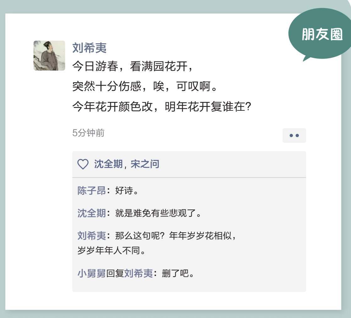 大概刘希夷这辈子最后悔的一件事情,就是发了这条朋友圈吧。