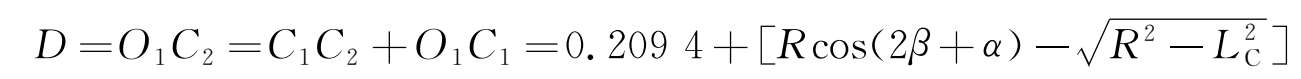γ 取值大,转臂就可以设置短一些; γ 取值小,转臂就必须设置长一些。 γ 受结构限制,不宜太大。设计时选定 γ =35°。