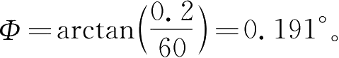 由前面计算已知缓和曲线长度 S =60m,则超高侧悬浮架的扭转角 Φ 可由下式算得: