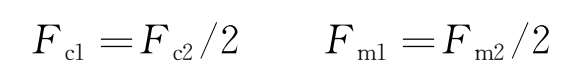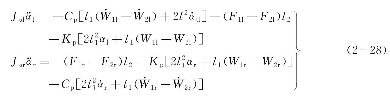 F 1l , F 1r , F 2l , F 2r ——左前、右前、左后和右后的空气弹簧作用在悬浮架上的车体垂向载荷;