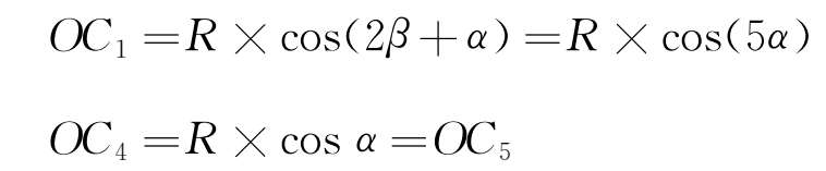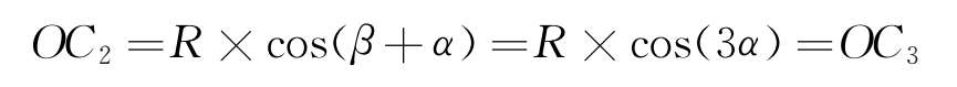 在对车体几何曲线通过分析时,常常假设模块和曲线是内接的。因为内接时相关结构几何状态往往是极限情况,按这种假设计算出的各种几何量是极限值,为曲线通过提供判断依据。模块和曲线相交或外接时,相当于过比曲线半径更大的曲线,曲线通过性更好。所以几何通过时经常采用模块和曲线内接的方式进行简化分析,求出的就是最极限的值。