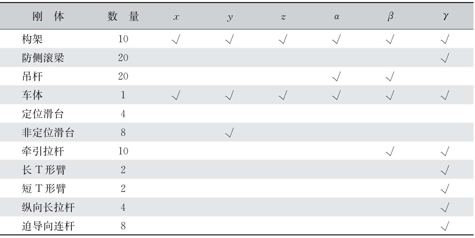 表2-2 各刚体模型的自由度