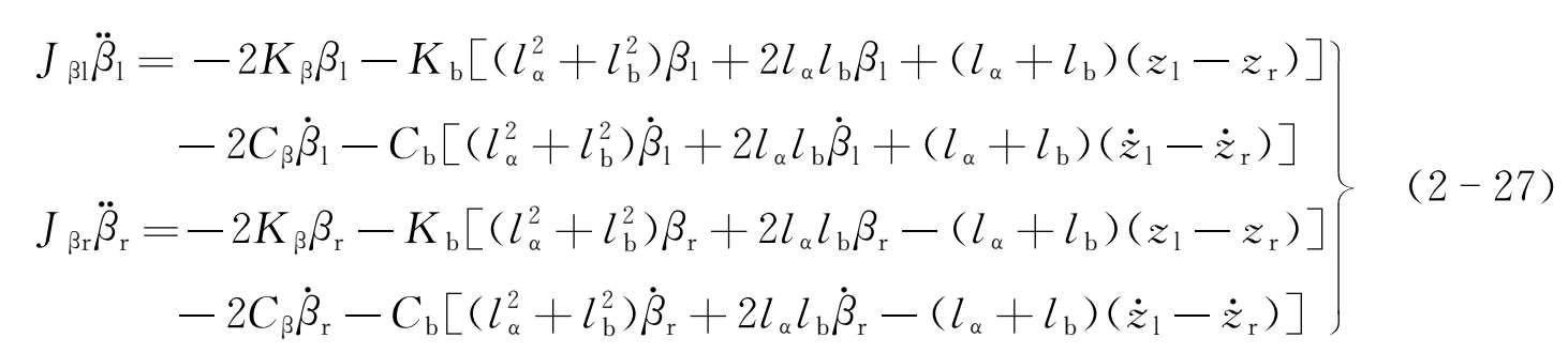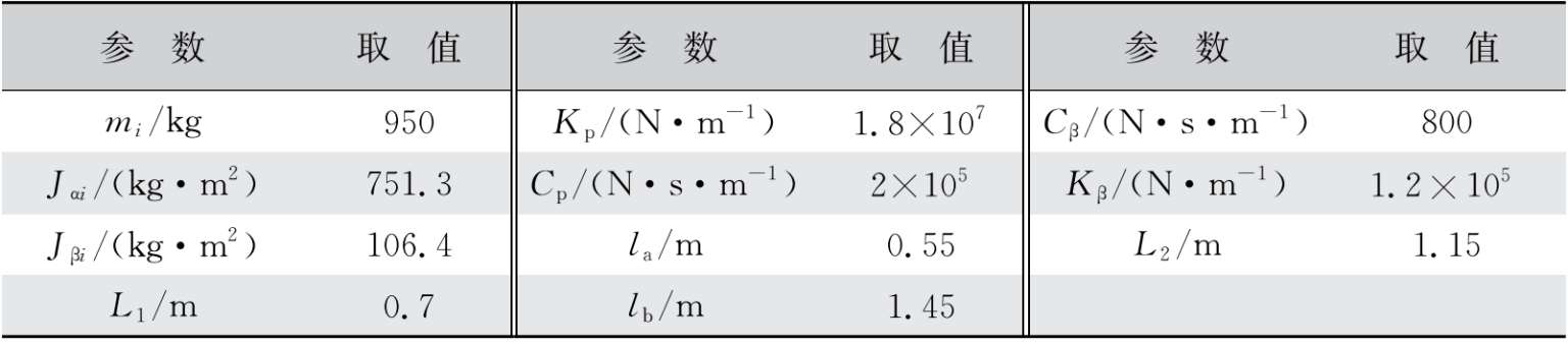 式中 K p , C p , K β , C β ——电磁力垂向刚度和阻尼,以及侧滚角刚度和阻尼;