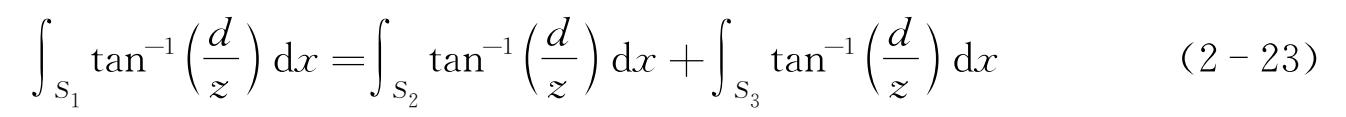 几何曲线通过分析时,可以只考虑导向磁力的影响。只要模块内外导向磁力相等,模块就能够平衡地通过曲线。从图2-26可以看出,为了使模块受力平衡,要求对式(2-22)在面积 S 1 上的积分等于在面积 S 2 和 S 3 上的积分之和: