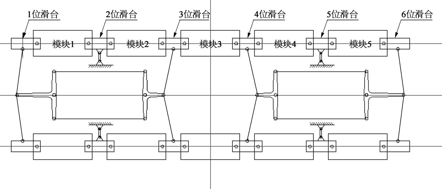 (1)迫导向机构的设计。从前面的分析可知,模块1滑台与车体的横向距离为312.9mm,模块3滑台与车体的横向距离为156.7mm。