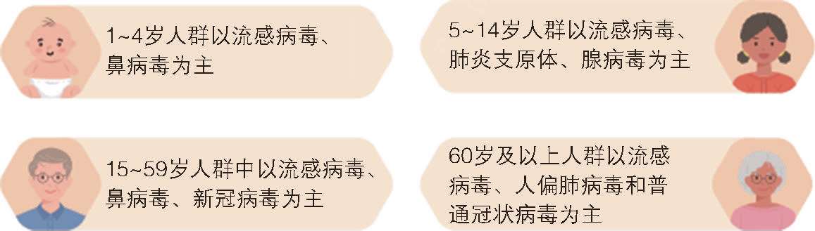 冬春季呼吸道疾病病原体以流感病毒为主,一般每年在10月下旬开始进入流感冬季流行期,同期也会有其他呼吸道疾病交替或共同流行,包括鼻病毒、肺炎支原体、新冠病毒、呼吸道合胞病毒、腺病毒、副流感病毒等。