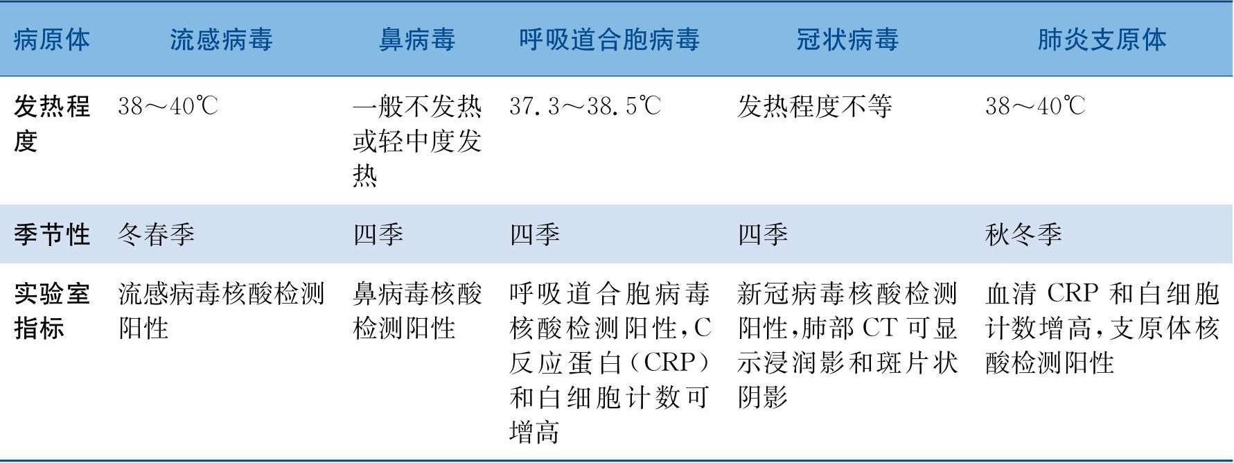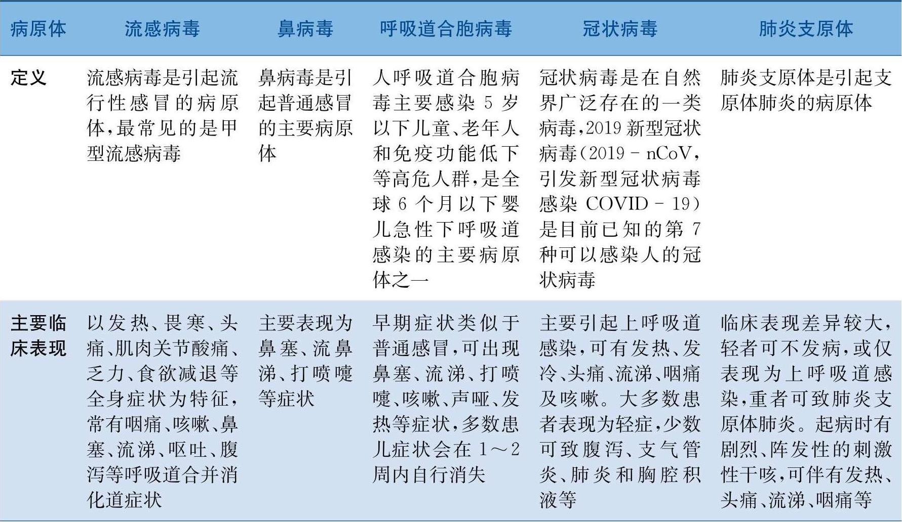 表1 不同呼吸道病原体的特点