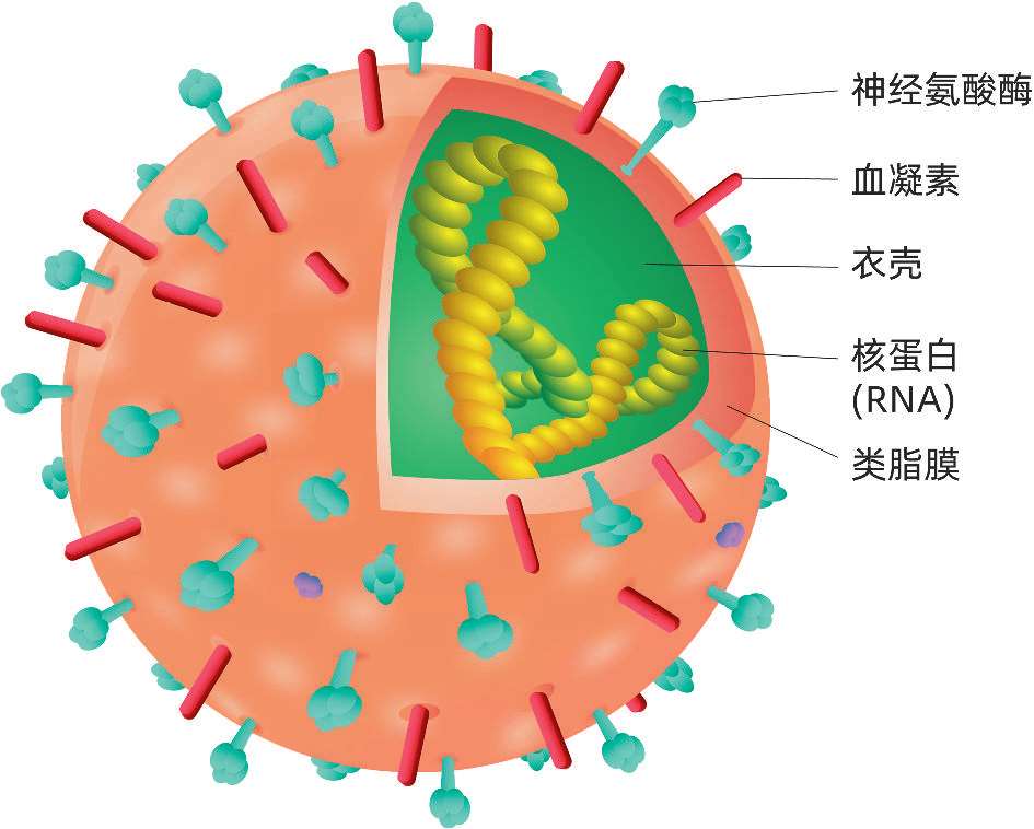 流感是流行性感冒的简称,是由流感病毒引起的急性呼吸道传染病。病毒由包膜、基质蛋白及核心组成。根据流感病毒核蛋白的抗原性,一般将其分为甲(A)、乙(B)、丙(C)三型。
