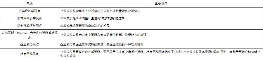 任何一个企业大体上都会经历一个生成、成长,继而衰亡的生命周期。在管理学研究中,企业成长是一个重要的研究领域,研究者认为对企业成长过程和驱动机制的探究不仅能够洞悉企业参与市场竞争过程和战略行为的动态变化(叶顺,2016),还可能预测整体经济环境波动的微观因素。需要注意的是,企业成长是个很复杂的问题,这种复杂性不仅体现在成长本身的多样性上,也体现在已有研究视角和研究范式的多样性上。有研究者(Walker & Brown,2004)指出,并非所有的小企业都能成长为大企业;并非所有的小企业主都有让自己的企业成长为大企业的意愿。仅此一点便足见企业成长问题的复杂性。本部分我们主要对已有研究关于企业成长本质和影响因素的核心观点进行总结(见表3.1)。