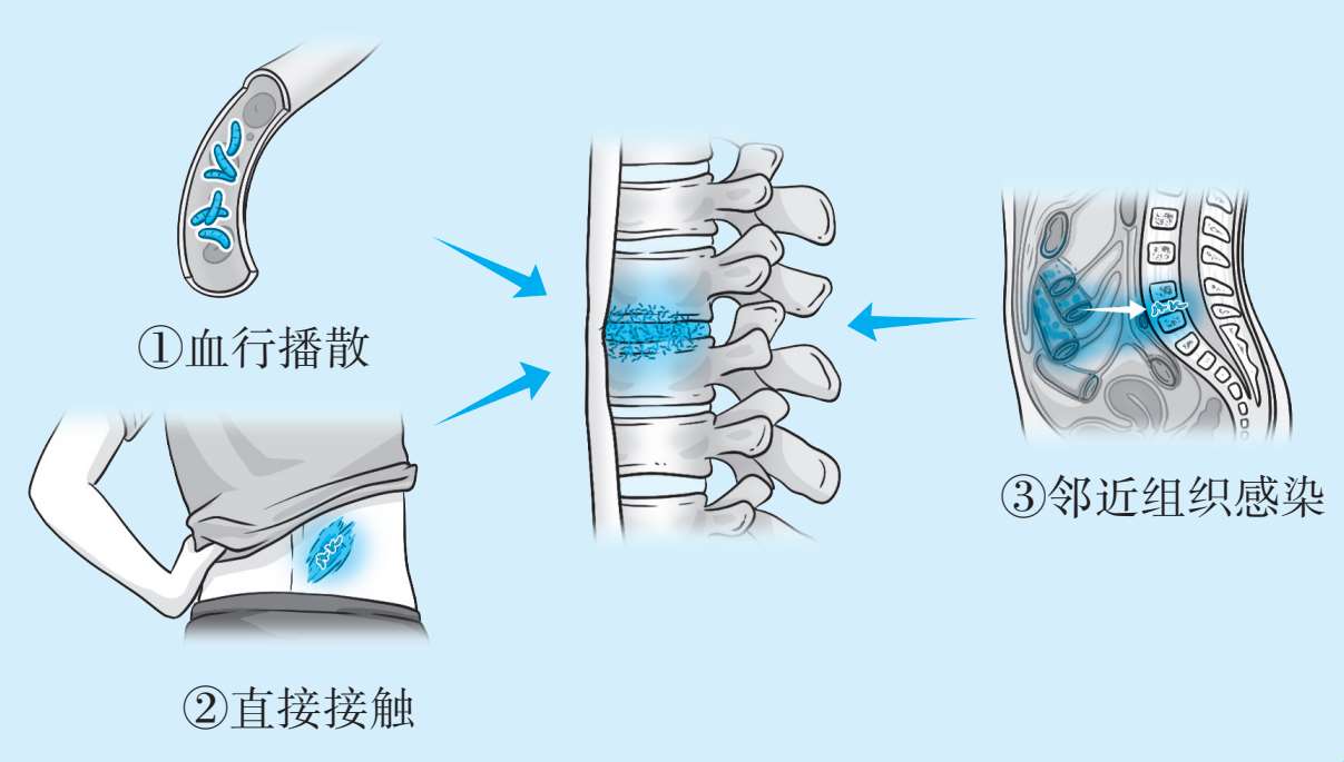 肺结核、肝结核、肾结核等的病灶内的结核杆菌通过血液循环系统和淋巴系统播散到骨骼系统,导致骨结核病的发生。