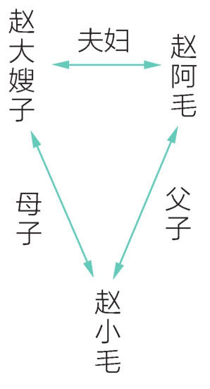 “赵阿毛的儿子是赵小毛,老婆是赵大嫂子。