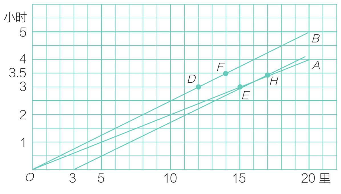 “从3.5小时的那一点画条横线,与两直线相交于 FH , FH 间的距离——3.5里,就是所求的。”