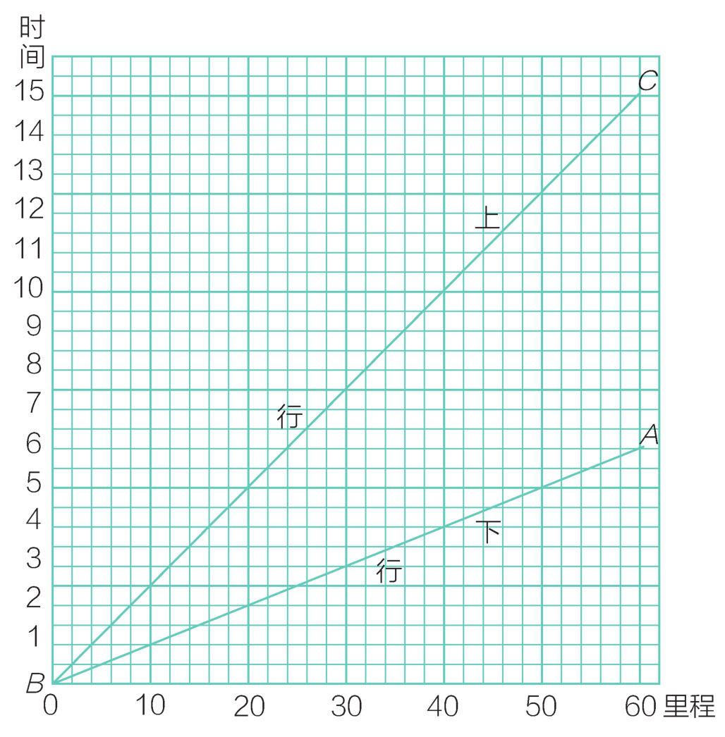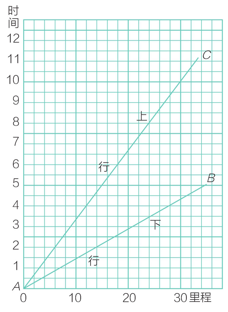 “对的,若是画图,只要参照一定倍数的关系,画 AB 线就行了,如图7-2所示。王老七要从 B 回到 A ,每小时走3里,他的行程也是一条表示一定倍数关系的直线 BC 。至于计算法,这一分析就容易了。”马先生不曾说出计算法,也没有要我们各自做,我将它补在这里: