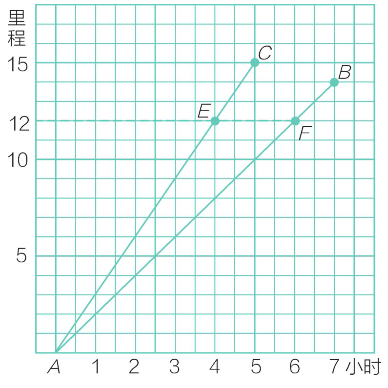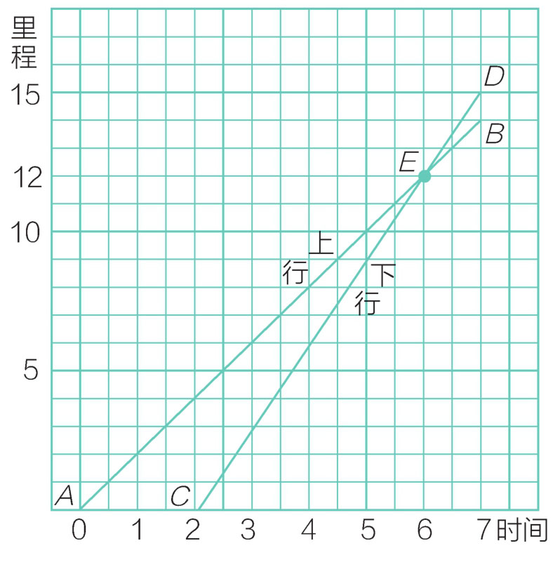 “题上已说明相差2小时,那么表示下行的 AC 线,若从2时那点画起,则可得交点 E ,如图7-5所示,岂不更清晰明了吗?”