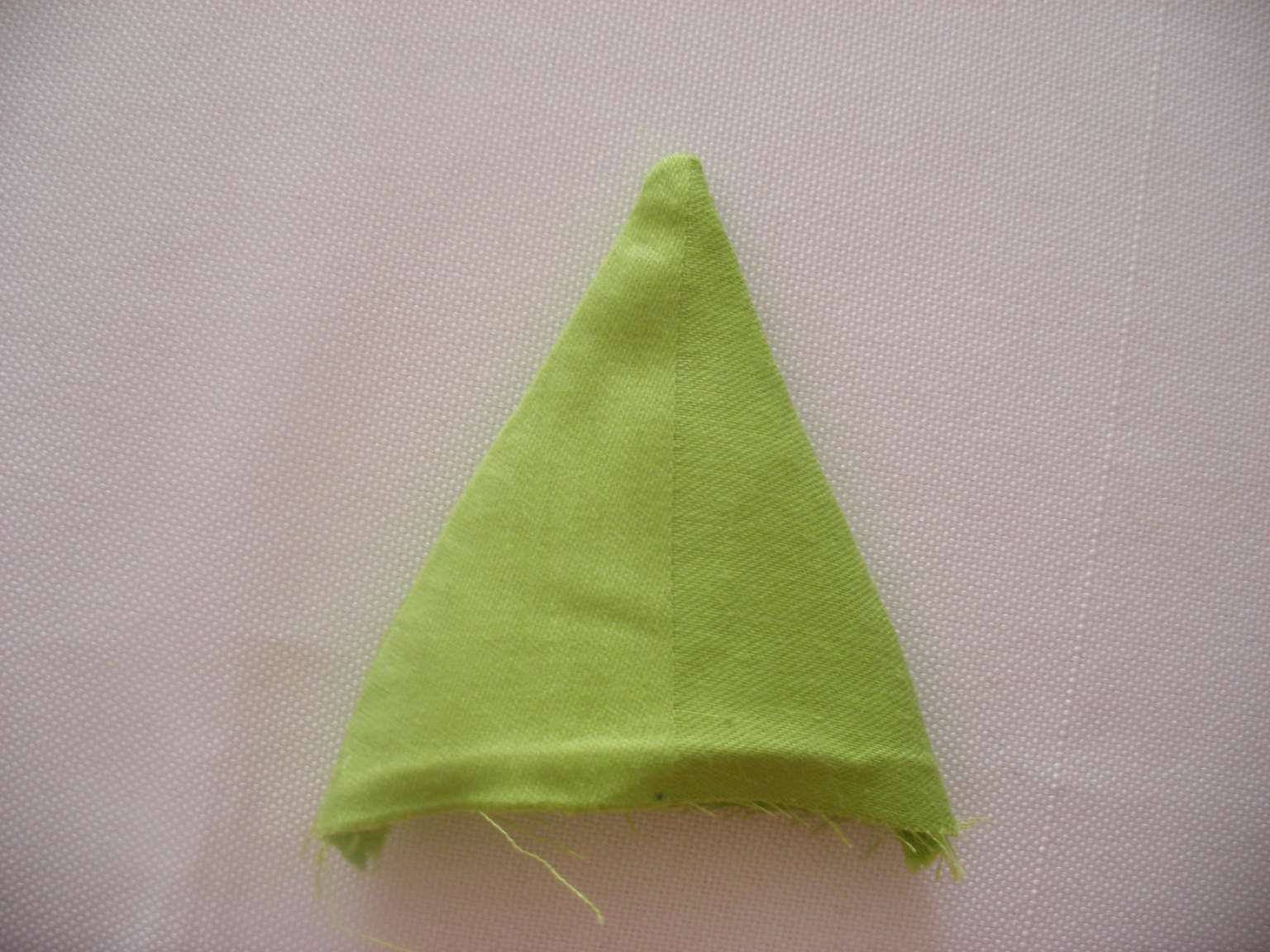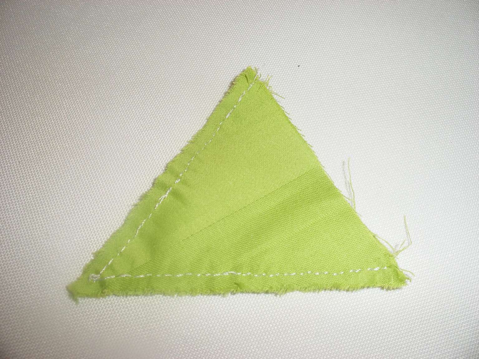 4.沿线进行剪裁,裁剪下 16 个三角形,必将每个三角形的两边缝合在一起,如图所示。