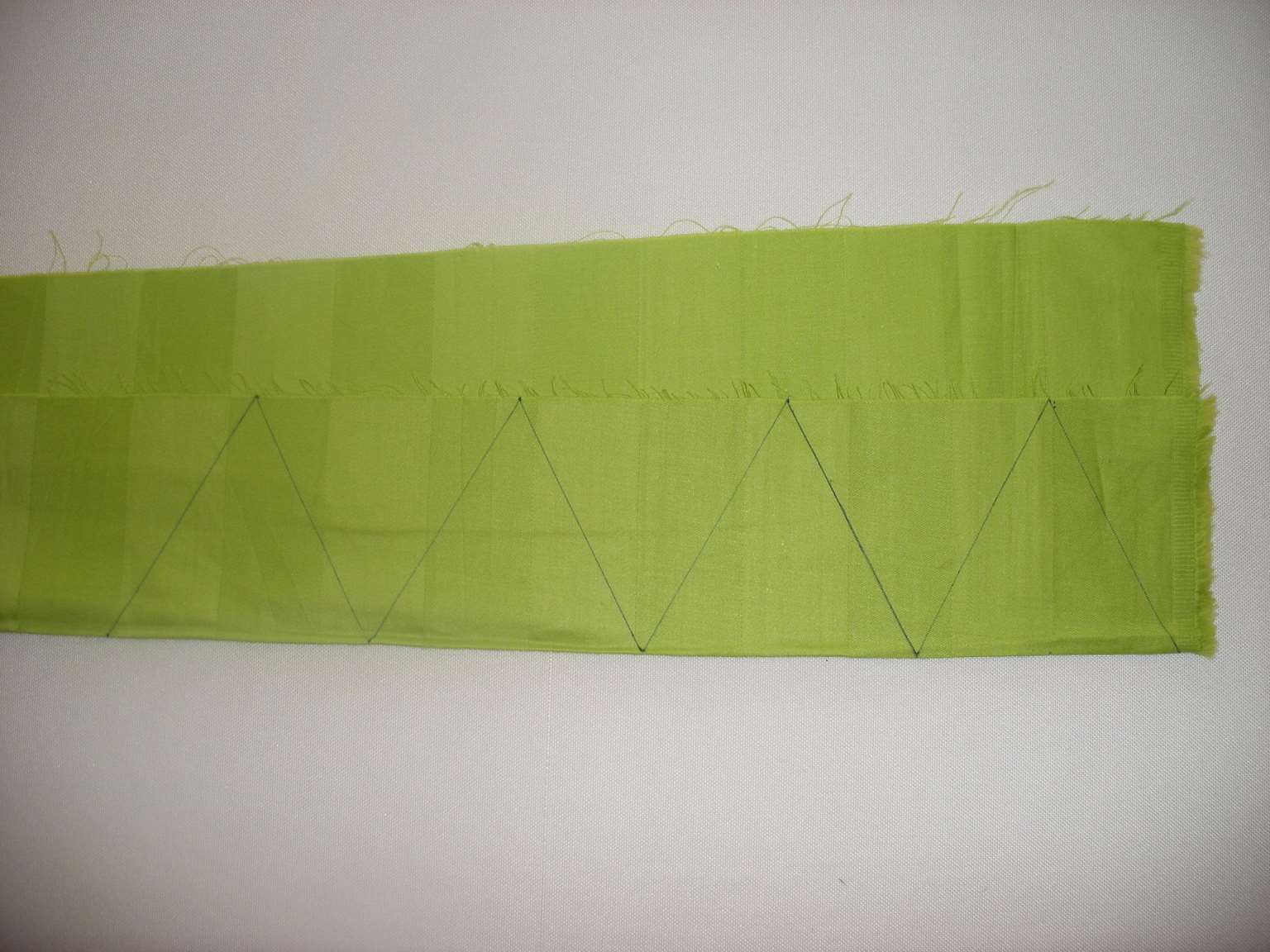 3.将绿布对折,使其宽度约为 5 厘米,并用彩笔画线,如图所示。
