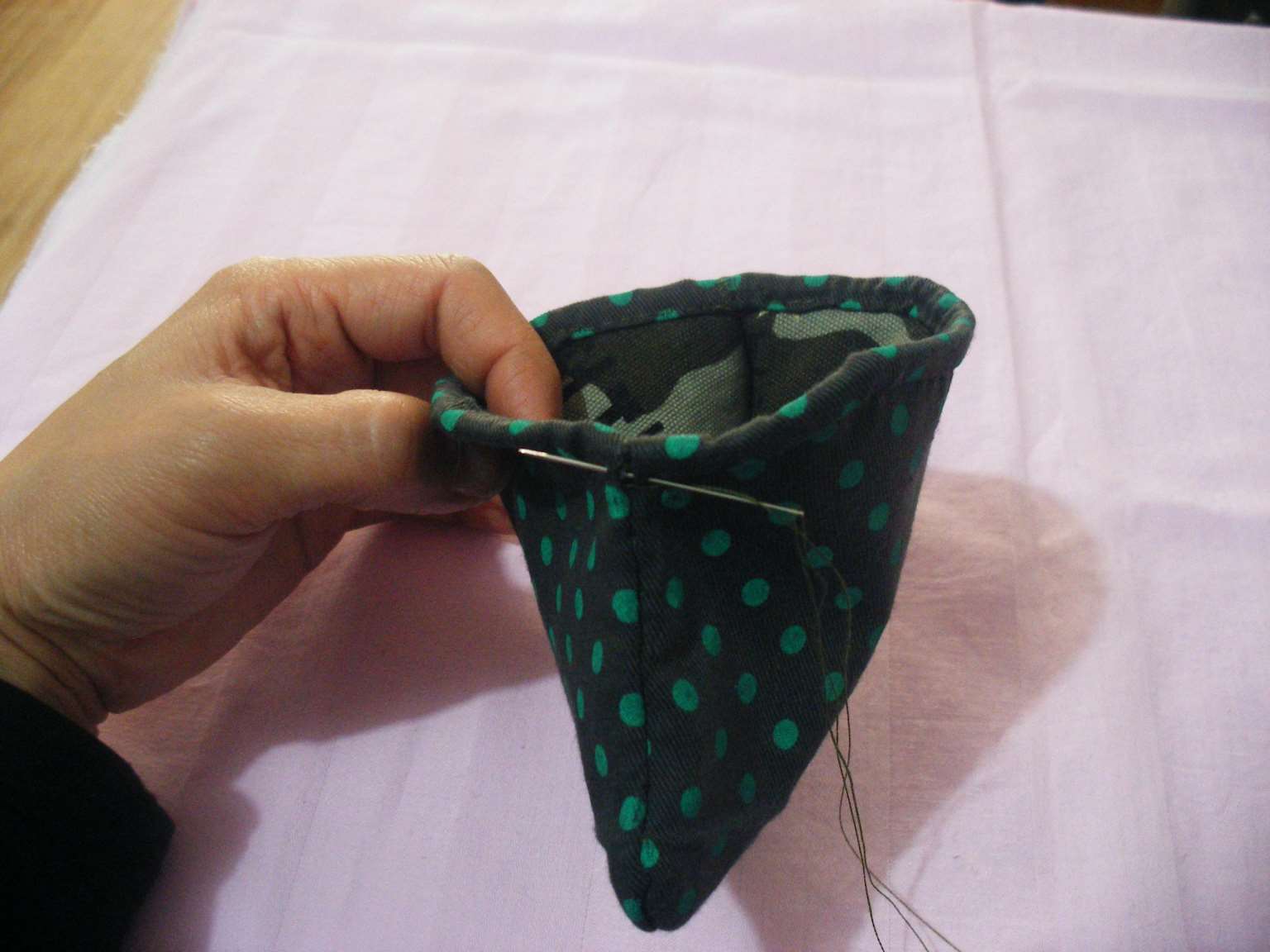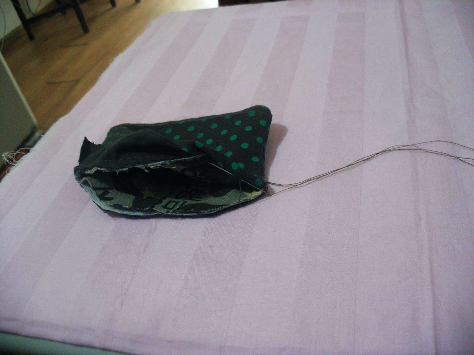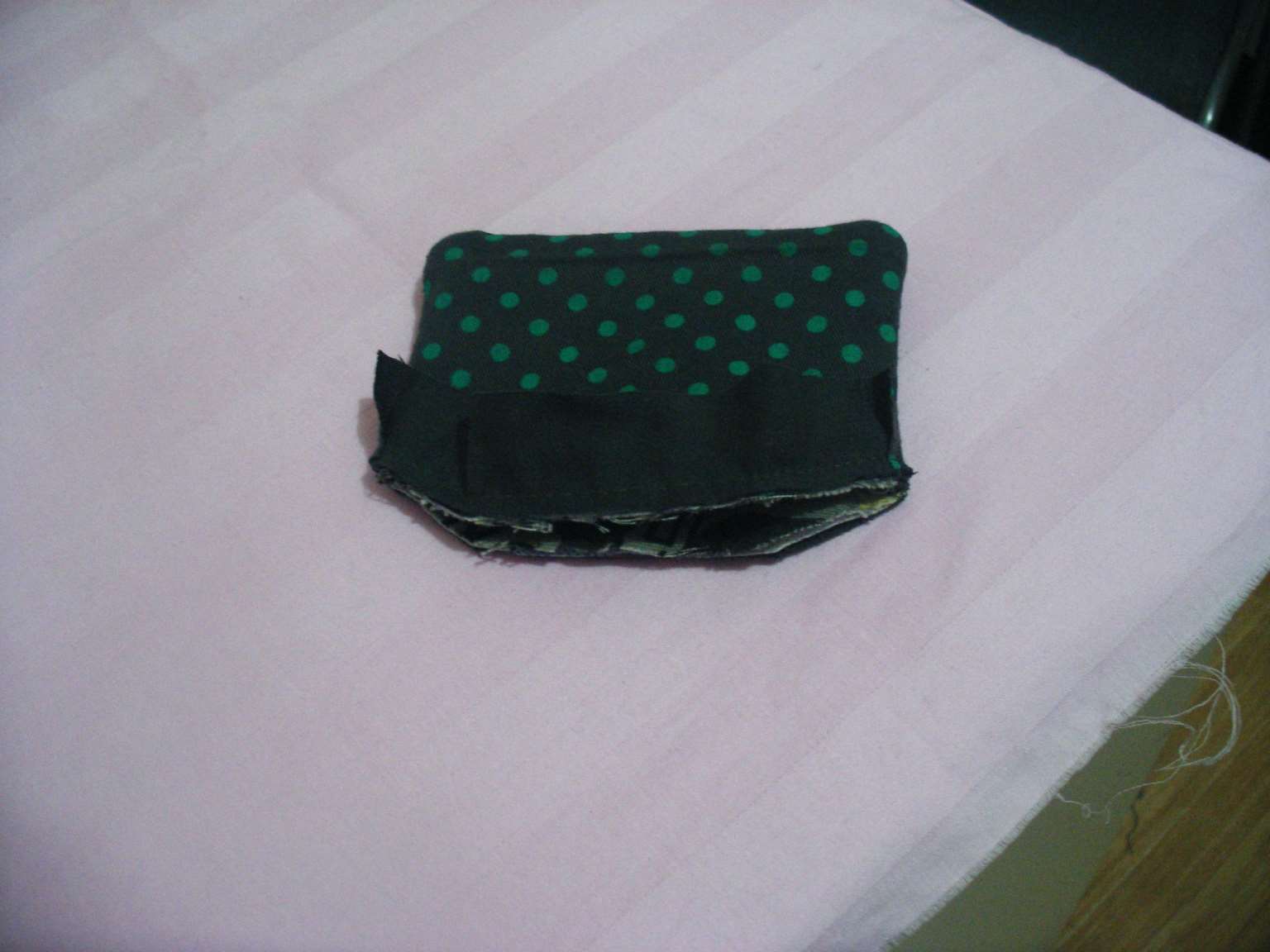 18.将零钱包的两底角按照图所示的方法窝进去。19.将窝进去的地方缝合,最后的效果如图所示。