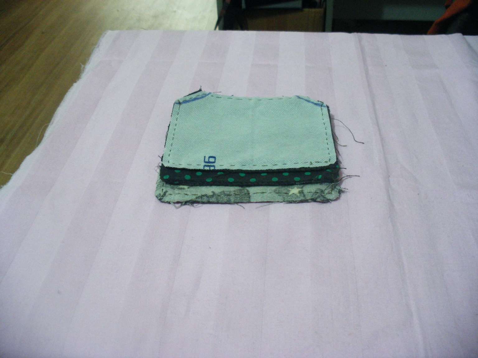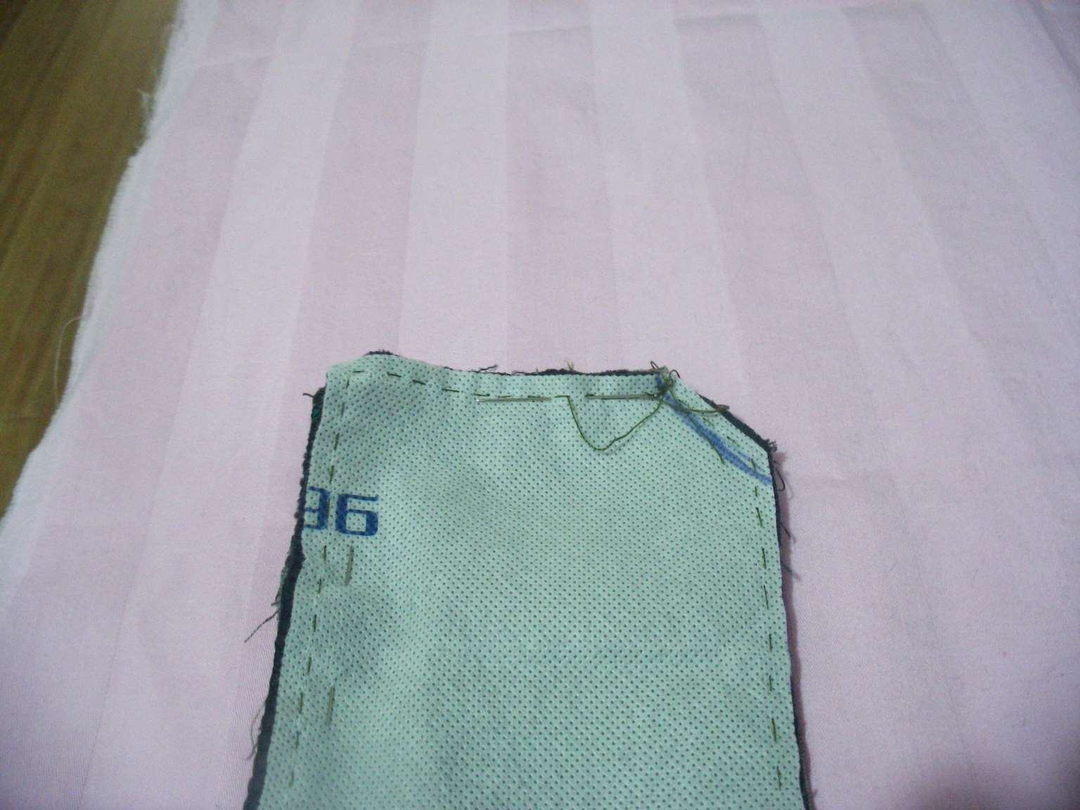 5.将不织布与外皮缝制在一起,如图所示。6.将两块内衬缝合在一起,如图所示。