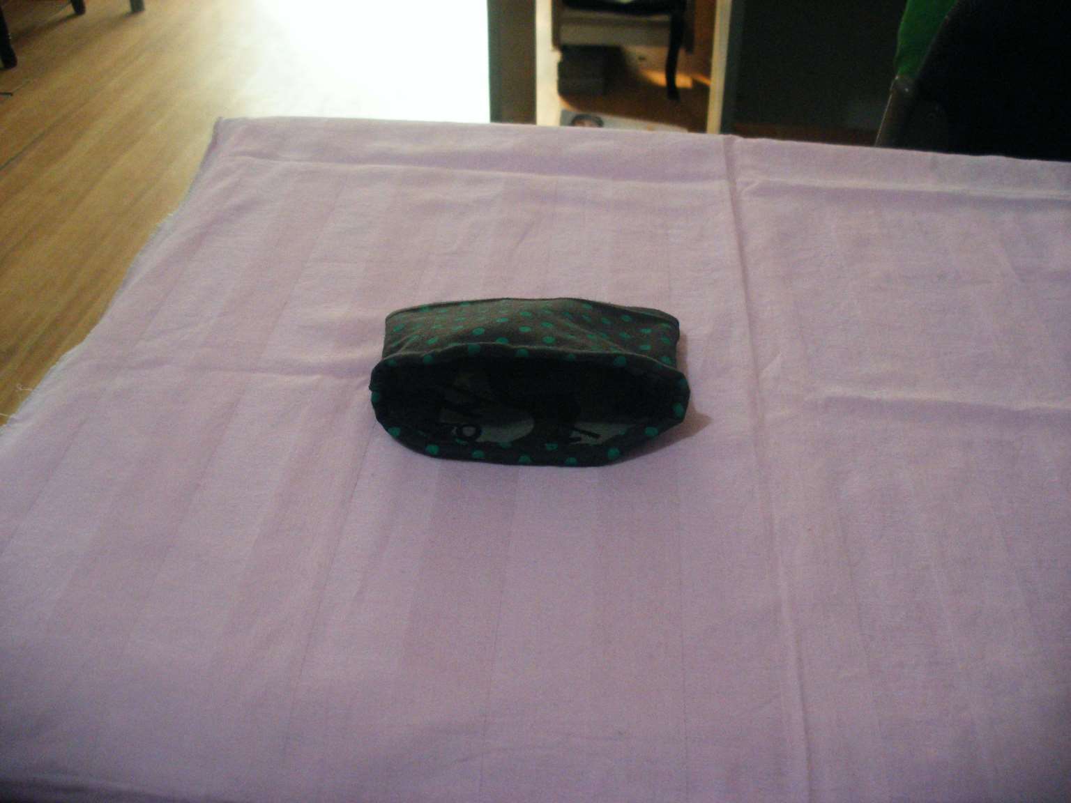 9.沿着标记将多余部分剪掉,如图所示。10.将内衬翻个,如图所示。