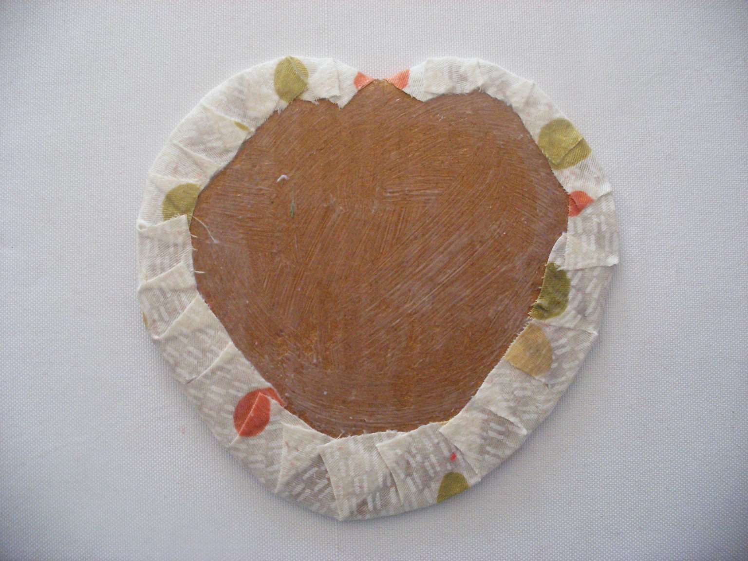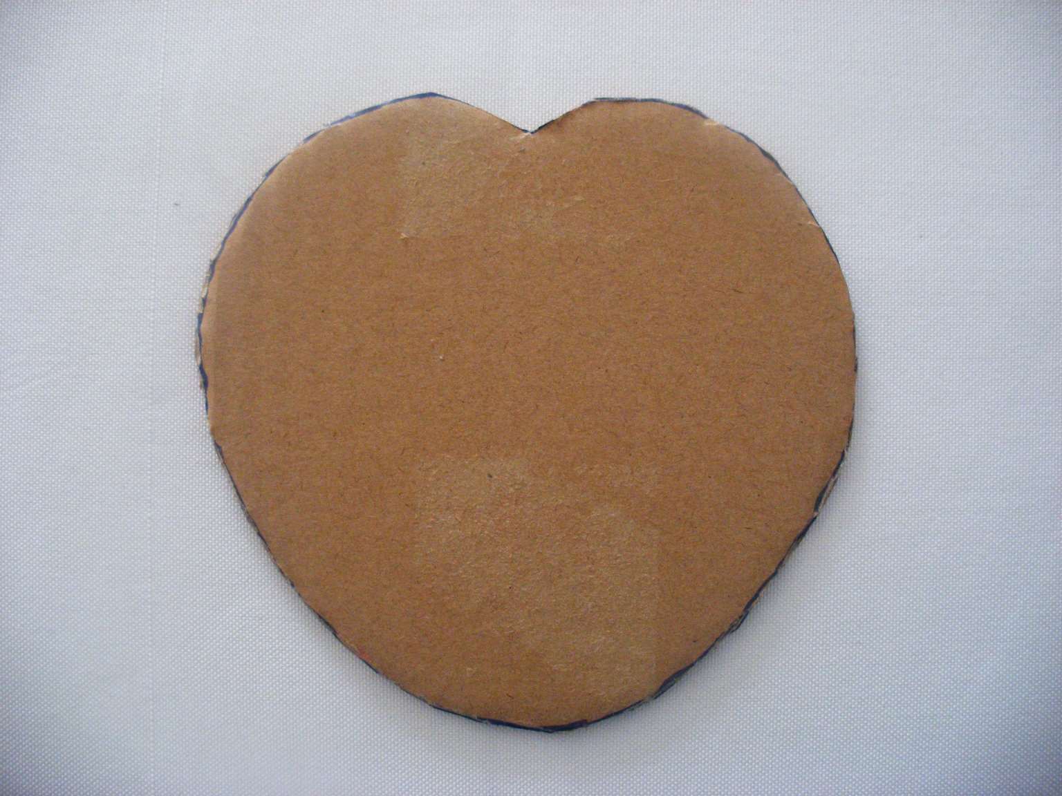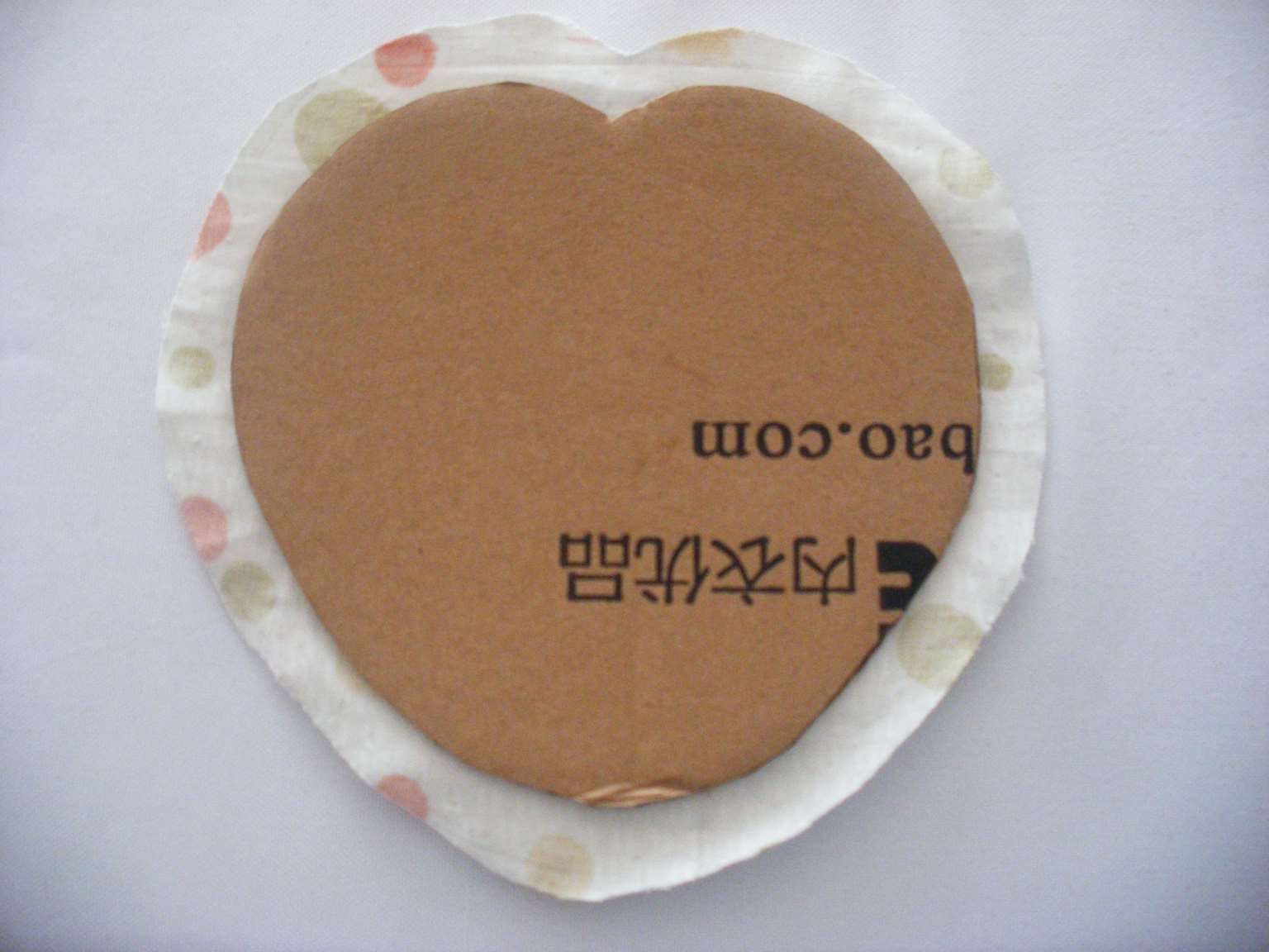 15.用乳胶将大桃心花布、纸板按照步骤 12、13 固定好。