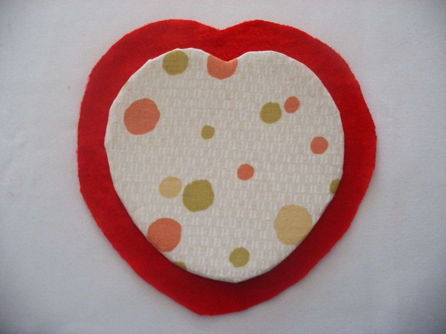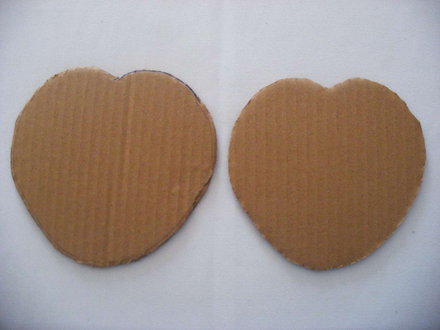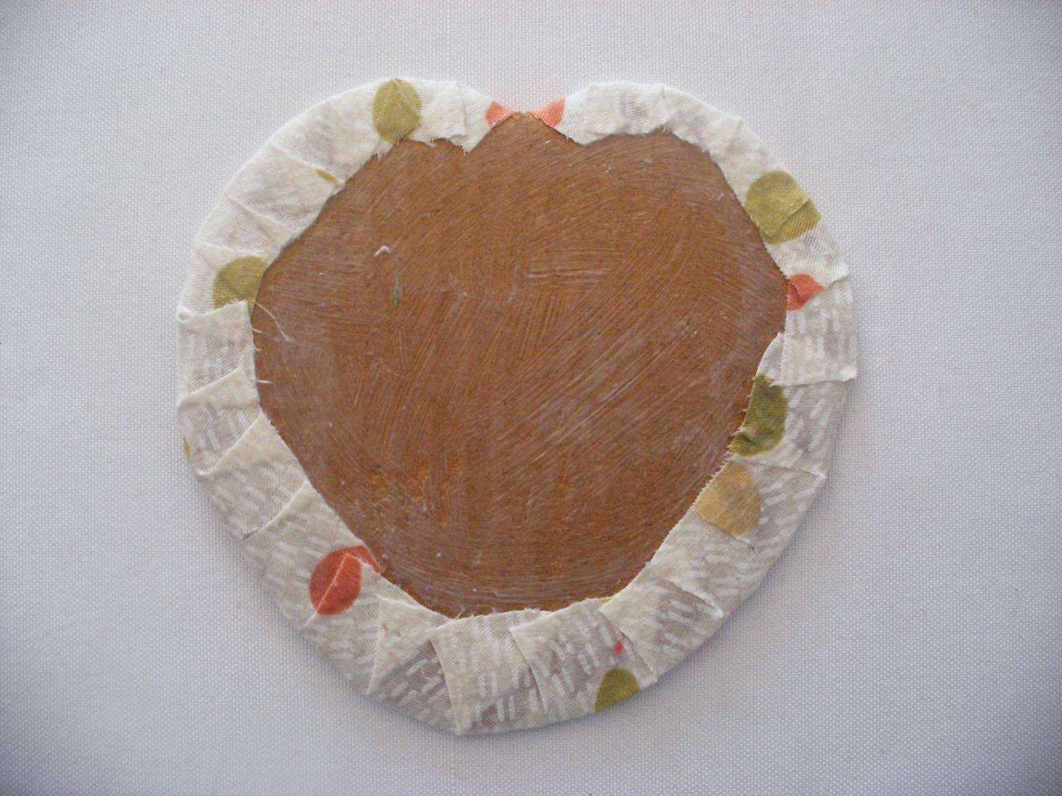 15.用乳胶将大桃心花布、纸板按照步骤 12、13 固定好。