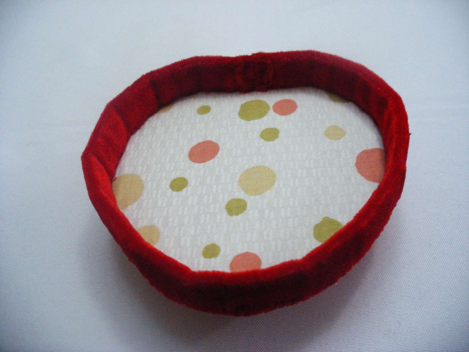 23.将缎带如图所示缝在盖子的周围。缝好的效果如图所示。