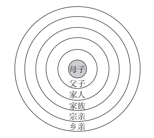 群体既然是天然形成的,人际关系自然以“母子”这一最原始的血缘关系为起点。古代先民只知有母,不知有父。现代有许多家庭,由于父母离异,以致父子关系还不如兄弟姐妹关系来得密切而重要。父子关系再向外推,便出现祖父母、外祖父母等家人,然后推及父族、母族、妻族等家族以及同一姓氏的宗亲,算是血缘关系的逐层开展。