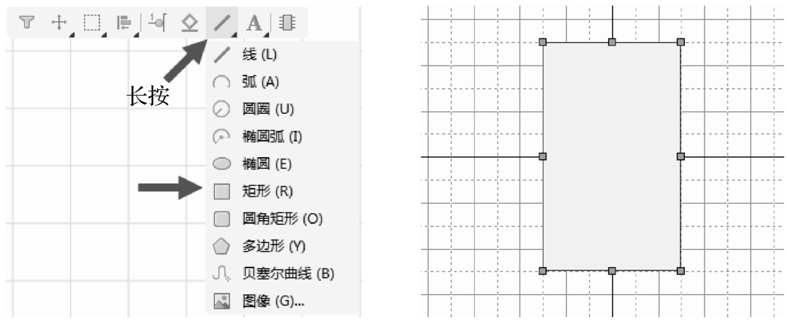 (2)移动鼠标光标到合适的位置单击鼠标左键,确定元件符号矩形边框的一个顶点,继续移动鼠标光标到合适的位置单击鼠标左键,确定元件符号矩形边框的对角顶点,单击鼠标右键或者按“Esc”键退出放置状态,放置完毕,如图4-10中右图所示。