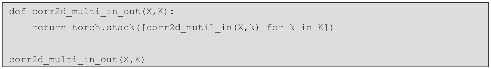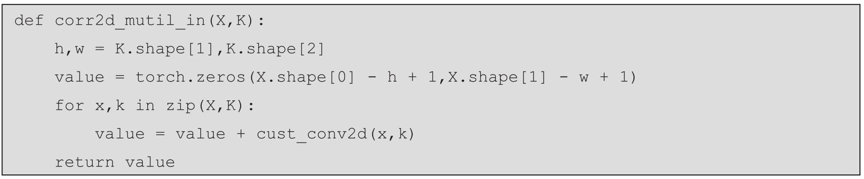 下面用PyTorch实现图2-20多输入通道的卷积运算过程。