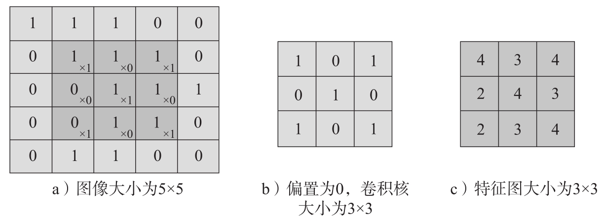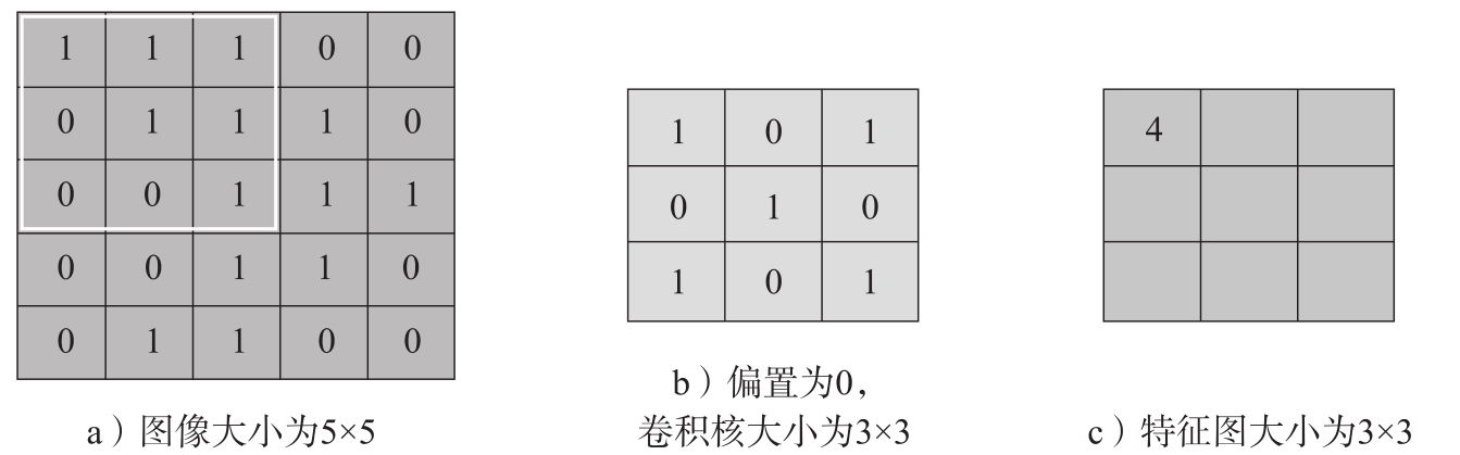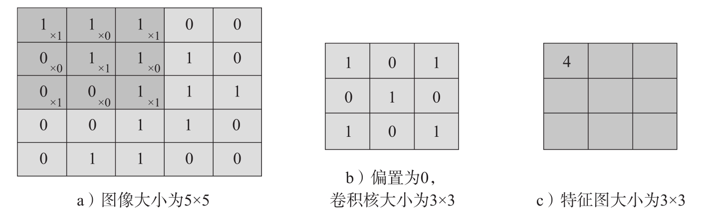 图2-11c中的3由表达式1×1+1×0+0×1+1×0+1×1+1×0+0×1+1×0+1×1得到。