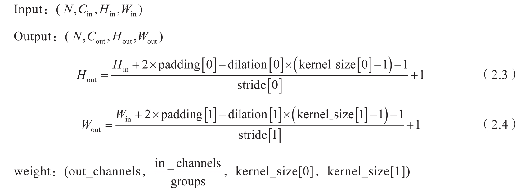 卷积函数nn.Conv2d参数中输出形状的计算公式如下: