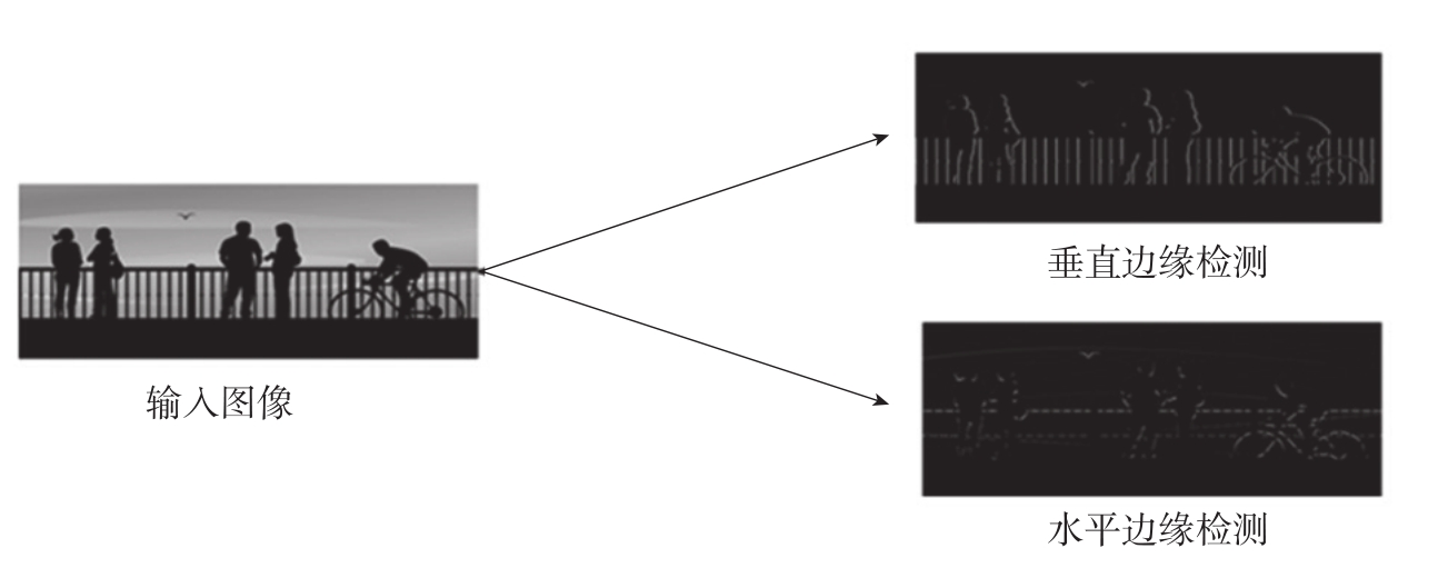 图2-15 卷积核对图像的水平边缘检测、垂直边缘检测的对比效果图
