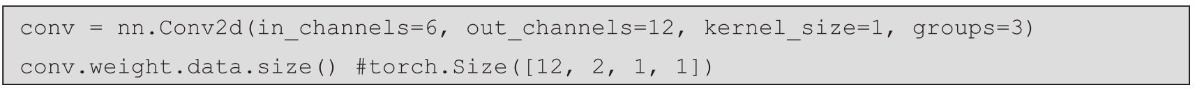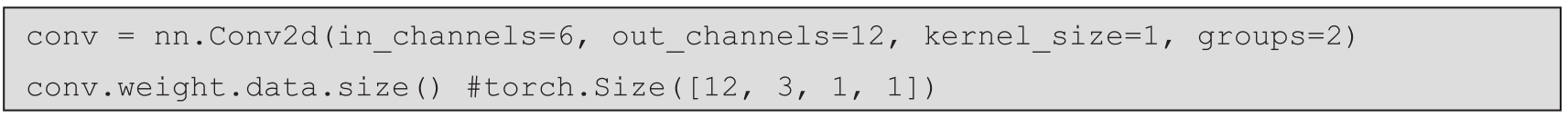 ● groups(int, optional):控制输入和输出之间的连接。groups=1,输出是所有的输入的卷积;groups=2,此时相当于有并排的两个卷积层,每个卷积层计算输入通道的一半,并且产生的输出是输出通道的一半,随后将这两个输出连接起来。