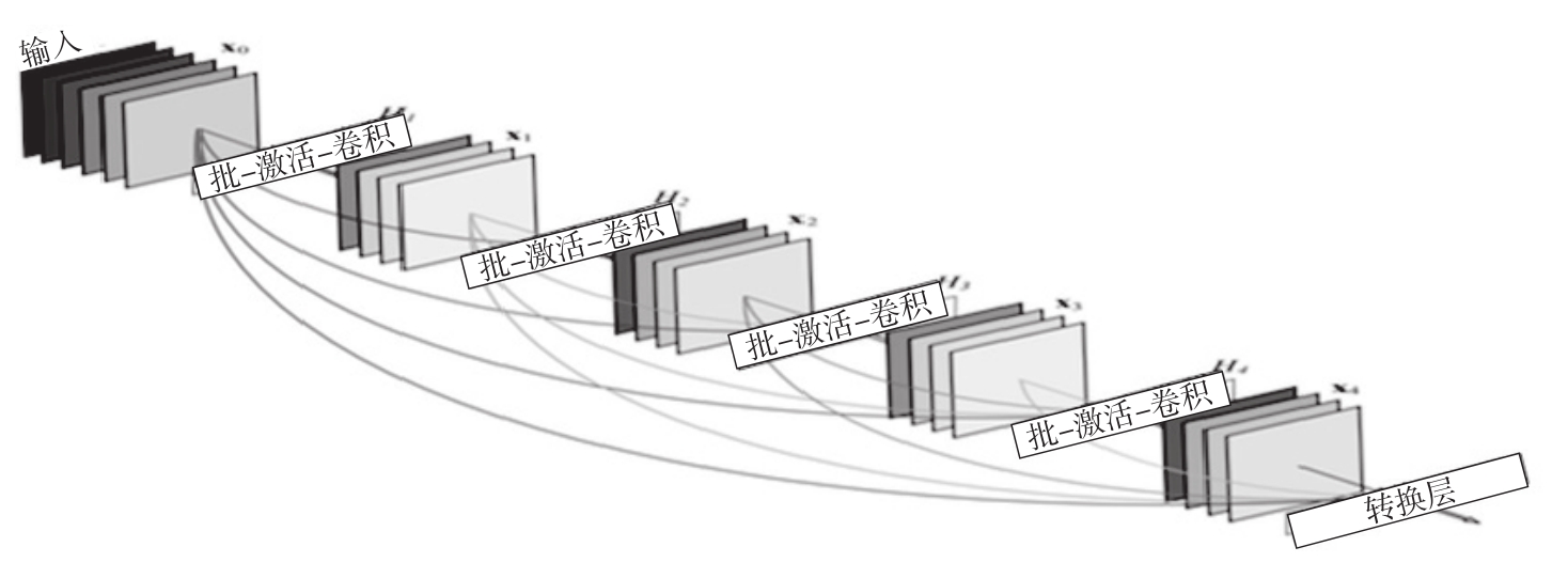 ResNet模型极大地改变了参数化深层网络中函数的方式,DenseNet(稠密网络)在某种程度上可以说是ResNet的逻辑扩展,其每一层的特征图是后面所有层的输入。DenseNet网络结构如图2-31所示。