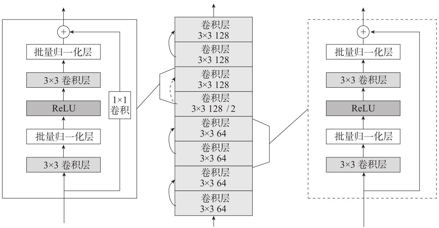 ResNet和DenseNet的主要区别如图2-32所示(阴影部分)。