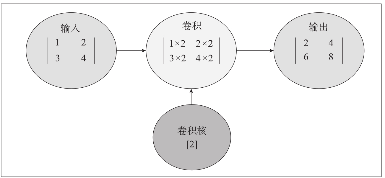 下面通过具体实例来加深理解。图2-8就是一个简单的二维空间卷积运算示例,虽然简单,但是包含了卷积的核心内容。