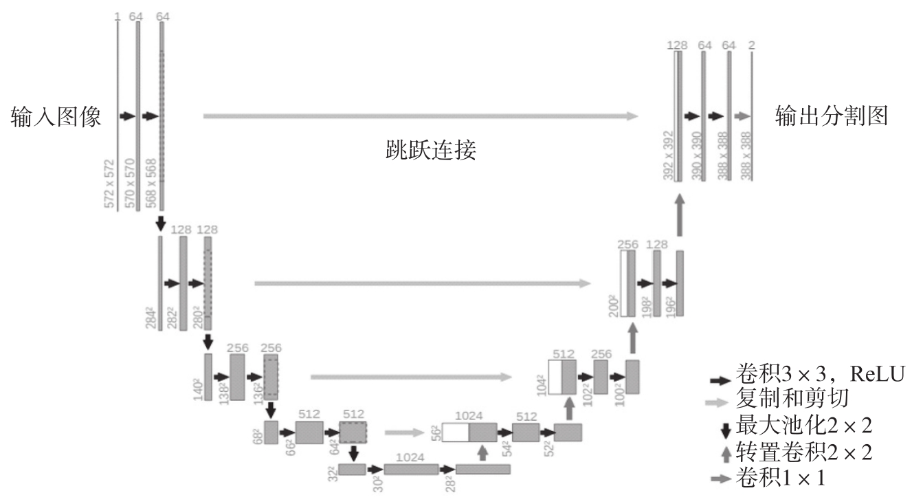1)由图2-33可以看到,输入是572×572的,但是输出变成了388×388,这说明经过网络以后,输出的结果和原图不是完全对应的,这在计算loss和输出结果时都可以得到体现。
