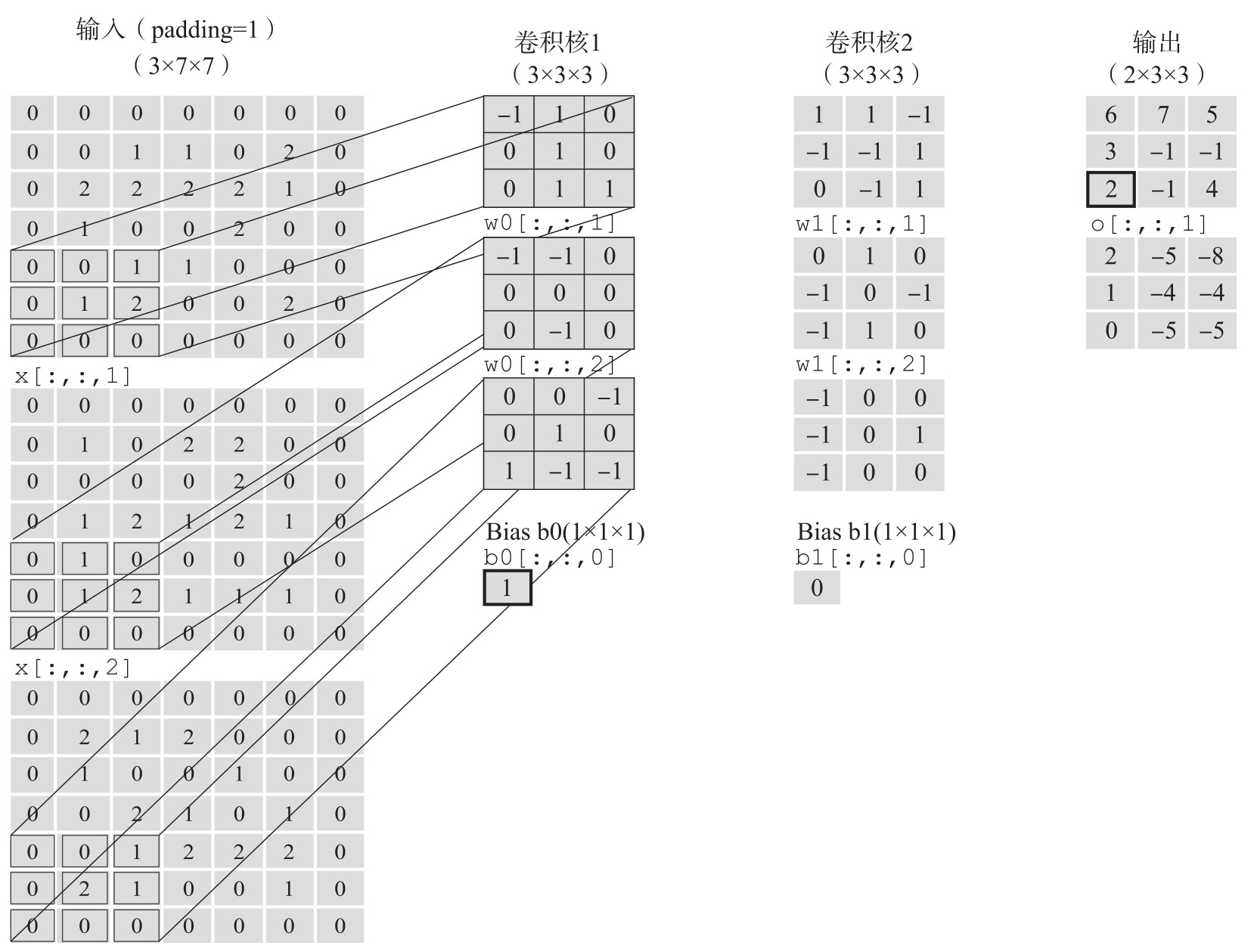 由此得出了这一位置的输出张量值,如图2-12所示。