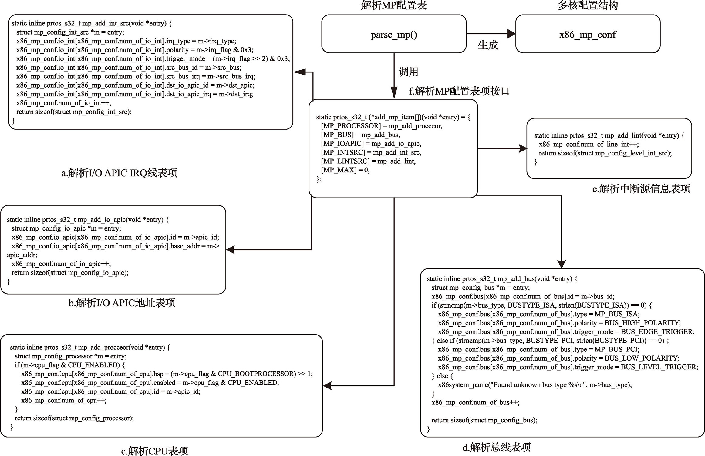 除了通过解析MP配置表获取多核配置信息外,PRTOS也支持解析符合APIC接口标准的配置表来初始化x86_mp_conf。关于PRTOS解析APIC配置表的具体实现,请参考core/kernel/x86/apic.c。