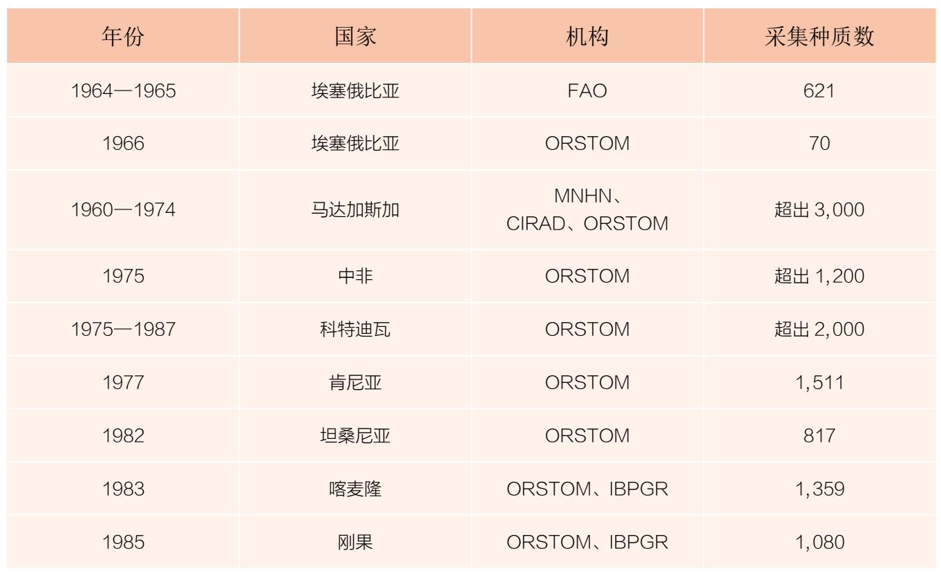 1964—1966年FAO与ORSTOM深入埃塞俄比亚西南部山林,合计采集691份野生阿拉比卡种质分赠以下11个植物研究机构:
